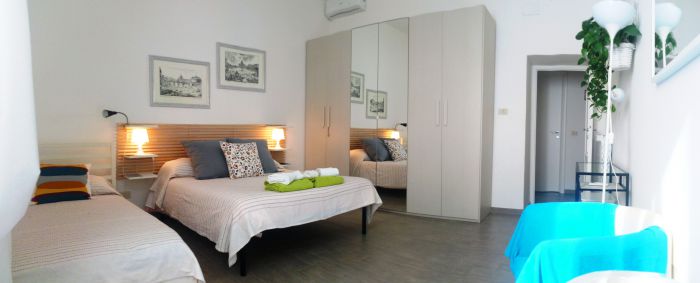 -la camera da letto grande è completa di armadio e scrivania per laptop, un letto matrimoniale + un singolo e affaccia su Via Candia. Questa stanza è ideale per chi ama uno spazio grande e luminoso.