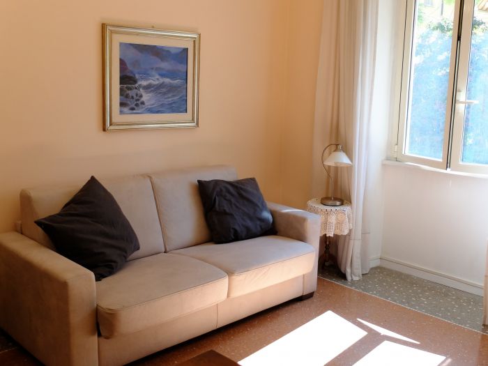 L'appartamento, molto luminoso e delizioso nel suo stile curato ed essenziale, è un primo piano composto da un'accogliente ingresso con scrittoio, da una cucina abitabile fornita di tutto il necessario per rendere più confortevole e funzionale il Vostro soggiorno, da una zona giorno luminosa e dotata di tv via internet e satellitare, da un'ampia camera da letto ed un servizio corredato di box doccia. L'esposizione ottimale (sud/ovest) rende l'appartamento molto luminoso durante tutto l'arco della giornata. Si tratta di un primo piano senza ascensore (11 scalini dall'androne al piano).