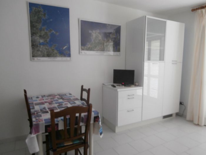 Bilocale composto da soggiorno con divano letto apribile matrimoniale, televisore lcd, angolo cottura totalmente accessoriato,forno, frigorifero con scomparto freezer, camera da letto matrimoniale, bagno con box doccia e lavatrice, terrazzo con tavolo e sedie